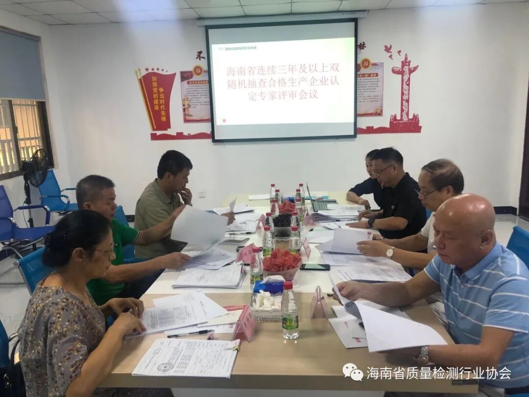 2020年8月12日下午,海南省质量检测行业协会(以下简称协会)在协会会议室组织召开“海南省连续三年及以上双随机抽查合格生产企业认定”专家评审会。